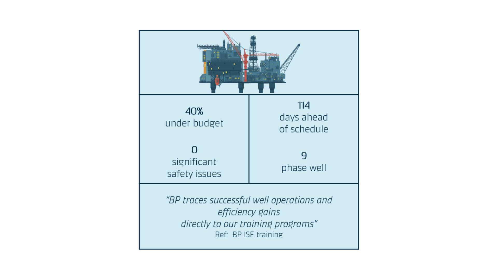 The ISE training has proven highly effective in strengthening BP’s safety culture and operational readiness.